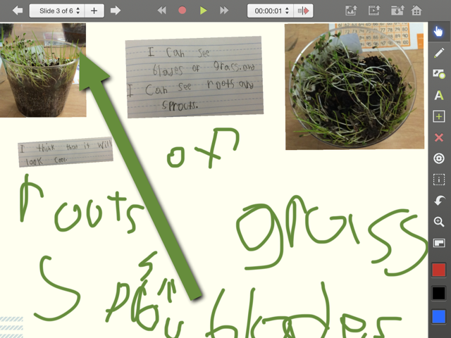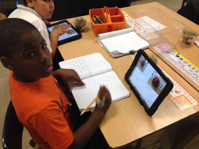 To enhance their science inquiries, students use the Explain Everything app daily as a science journal. They take pictures and label them, record observations, and make predictions. Students write on paper, but they take a picture of their notes and load it onto the Explain Everything slide for that day. The students are extremely focused and motivated in this work.